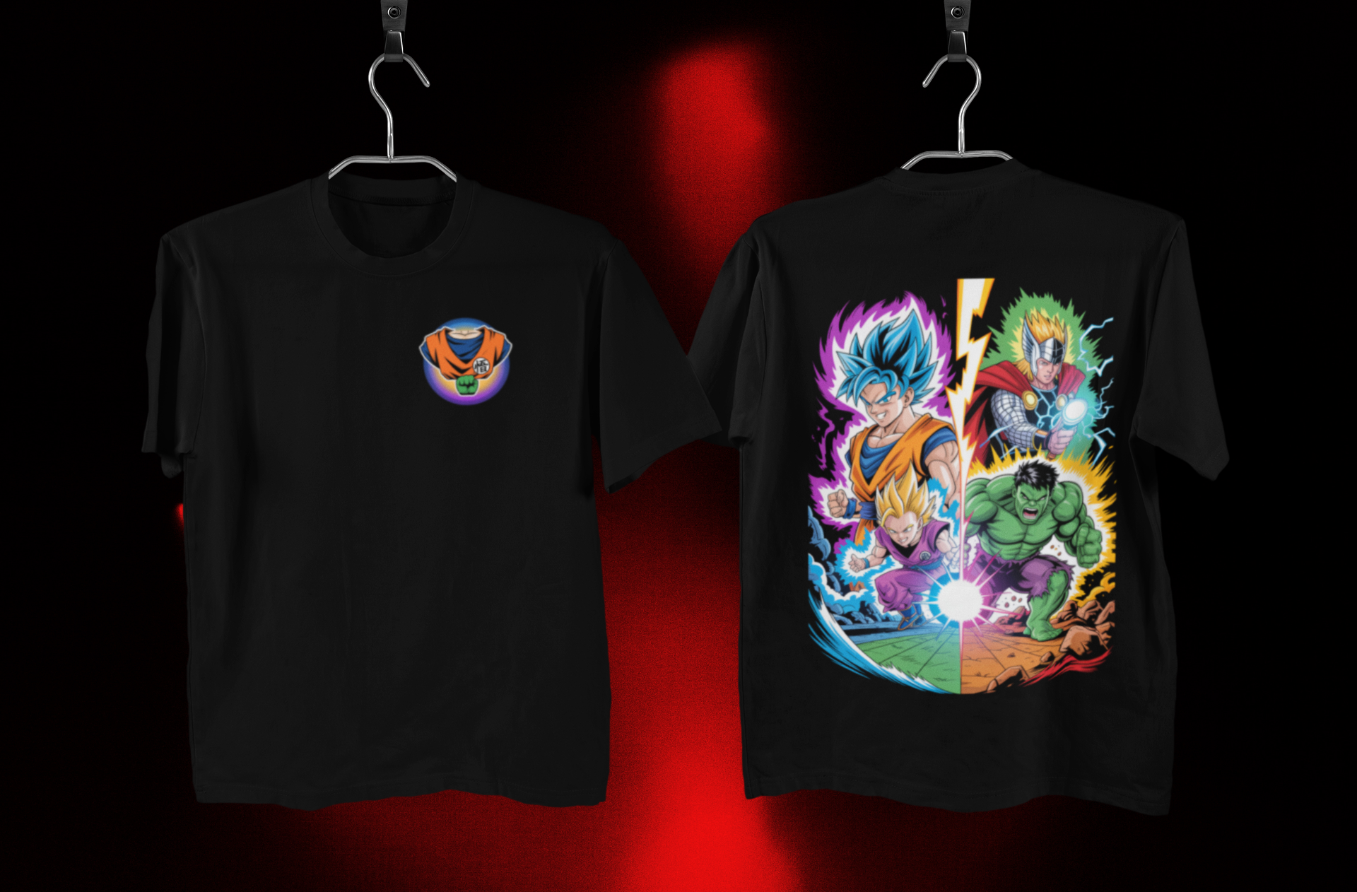 Whether you’re powering up like Goku & Vegeta, or unleashing strength like Hulk & Thor, this tee lets you carry the energy of both worlds everywhere you go. Pair it with jeans, joggers, or layer it under a jacket—it’s battle-ready streetwear for every fan.